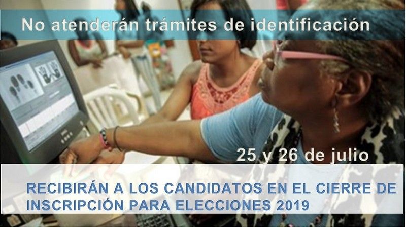 Durante los días jueves 25 y viernes 26 de julio no se prestará el servicio de atención al público para la realización de trámites de identificación en la sede de la registraduría municipal del estado civil debido a que el personal administrativo atenderá los procesos de inscripción de candidatos para las elecciones de autoridades territoriales, cuyo plazo vence el próximo sábado 27 de julio.