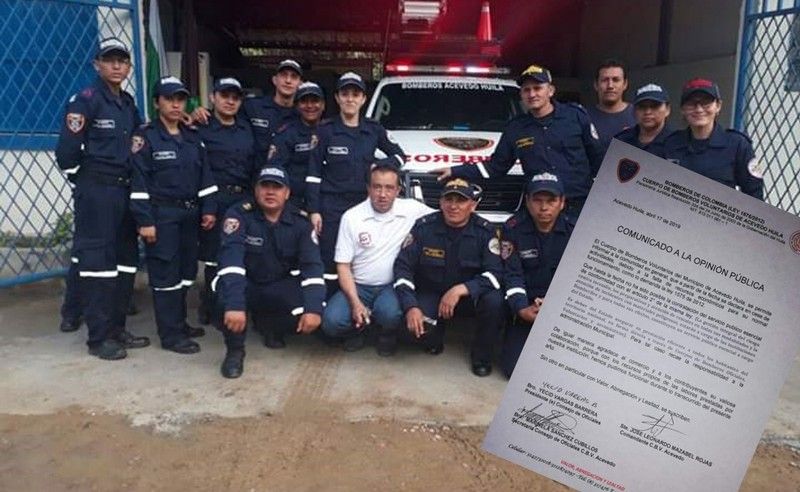 Mediante comunicado a la opinión pública, bomberos voluntarios del municipio de Acevedo dio a conocer que dará cese a sus actividades por falta de recursos económicos.