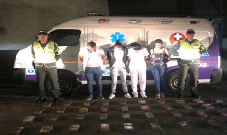 La Policía de Tránsito y Transporte reportó la captura de cuatro personas que se movilizaban en una ambulancia que simulaba llevar a un paciente, pero en realidad llevaba un gran cargamento de cocaína.