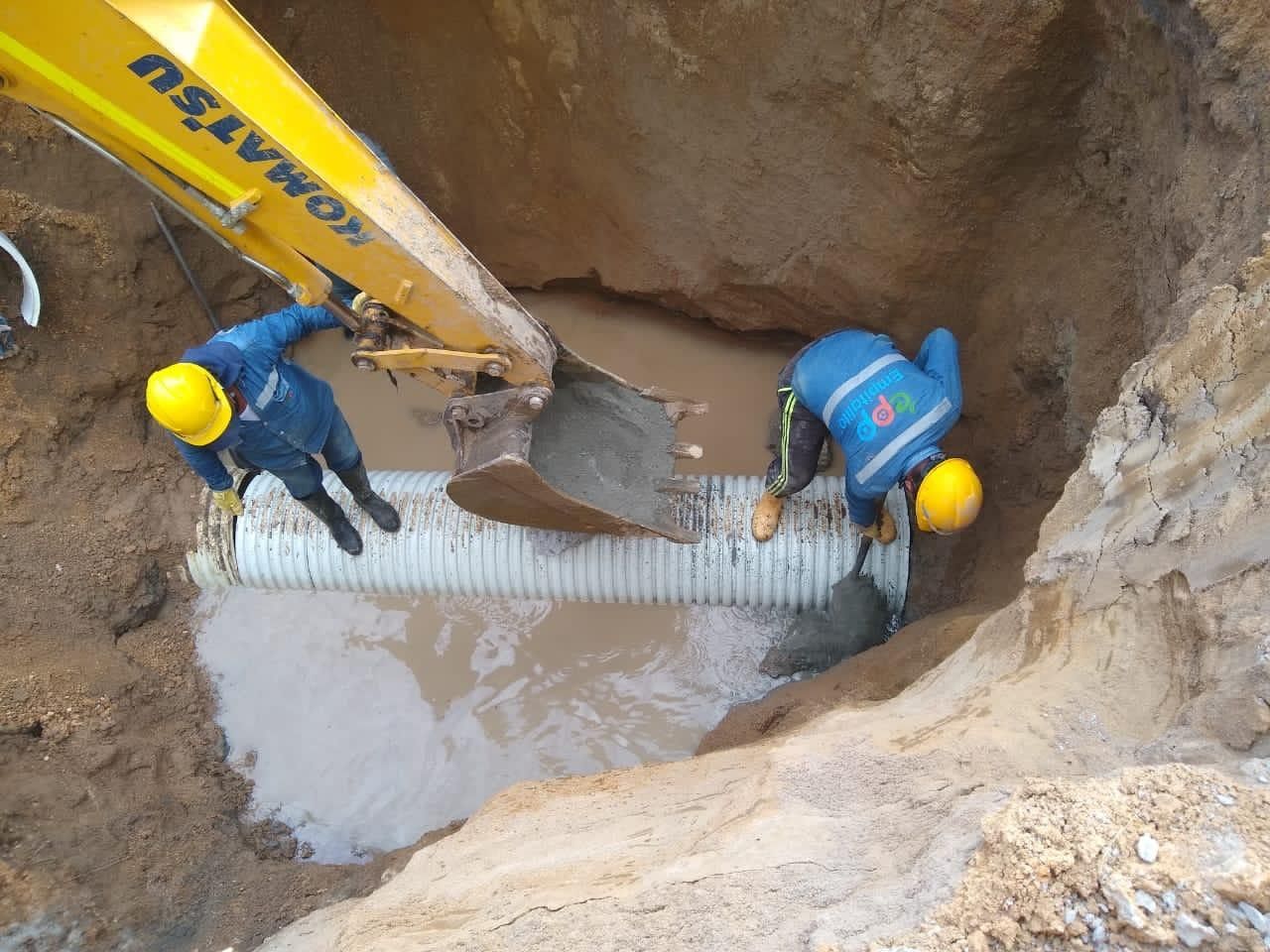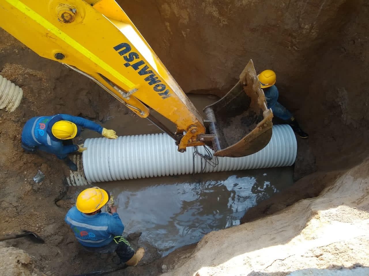 En Tiempo record. los operarios de Empitalito, repararon un grave daño presentado en la red del altancarillado de la Comuna 1 .