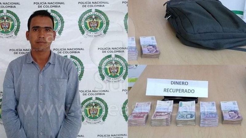 Hasta el lugar se desplazaron las autoridades y efectuaron la captura del sujeto que fue identificado como Juan Diego Perdomo Lozada de 24 años, a quien le hallaron en su poder el bolso con el dinero hurtado.