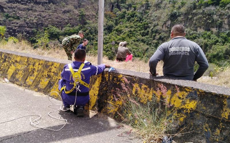 Hasta el lugar llegaron unidades de bomberos de Altamira y Timaná, quienes al ver a la mujer en el borde del abismo intentaron persuadirla con el apoyo de una psicóloga para que no se lanzara, pero ella manifestaba que lo haría.