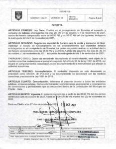 A través del decreto no. 268 se ordenó ley seca desde las 18 horas y hasta las 05 mañana del día siguiente para los días 29, 30, 31 octubre y 01 noviembre para el corregimiento de Bruselas.
