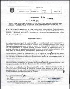 Ante este  infortunio acontecimiento, el  lunes 25 de octubre la policía junto con el ejército nacional, fiscalía, CTI, ICBF, UNP y otros organismos de control realizaron una reunión con la administración municipal apoyada por el secretario de gobierno con la misión de llevar acabo un consejo de seguridad para evaluar y definir algunas medidas para evitar que se vuelva repetir tal adversidad.