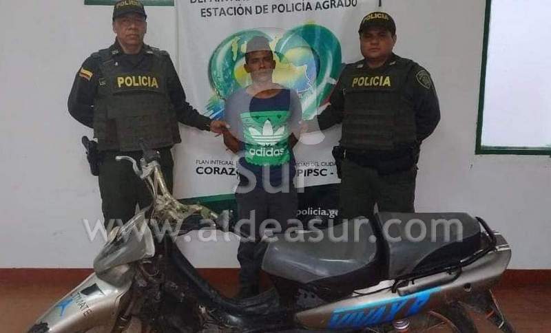 Luego de la información suministrada por un ciudadano a la policía del municipio del Agrado en el centro del Huila, sobre el hurto de su motocicleta Suzuki viva de placa BPX544B, se inició un plan de búsqueda, para dar con la captura del delincuente.