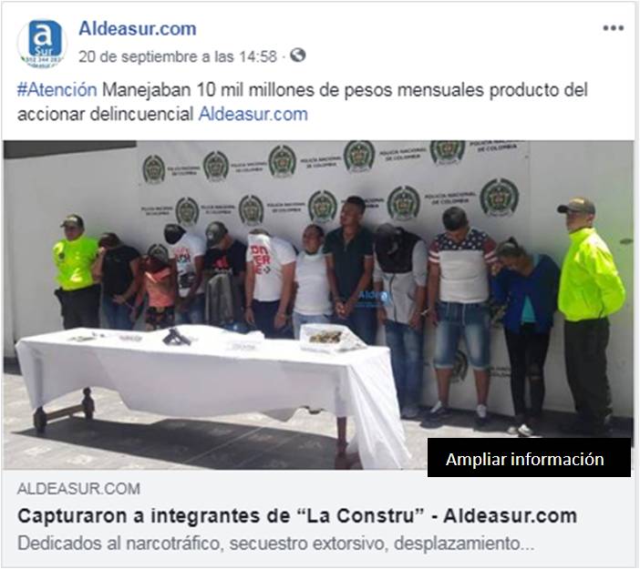 Así mismo en la vía Mocoa – Pitalito, la información suministrada por un informante, les permitió adelantar el registro a un vehículo tipo Furgón cuyas paredes fueron acondicionadas para camuflar 94 kilos de Pasta Base de Coca, sustancia ilícita que pertenecería al Grupo Delincuencial Organizado ‘La Constru’.