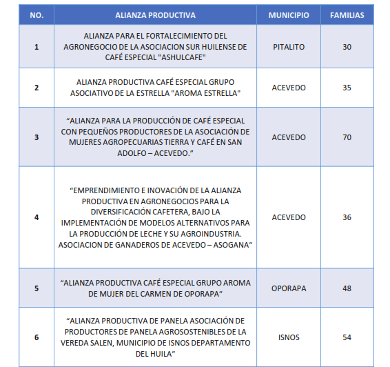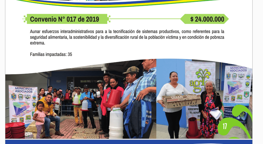 El informe logra sintetizar cada uno de los elementos de inversión en donde la cadena productiva avícola y del café muestran sus avances en sectores que nunca habían sido tenidos en cuenta sobre todo en el apoyo a motivar la seguridad alimentaria con la producción y comercialización de productos como carne y huevos de gallina entre otros.