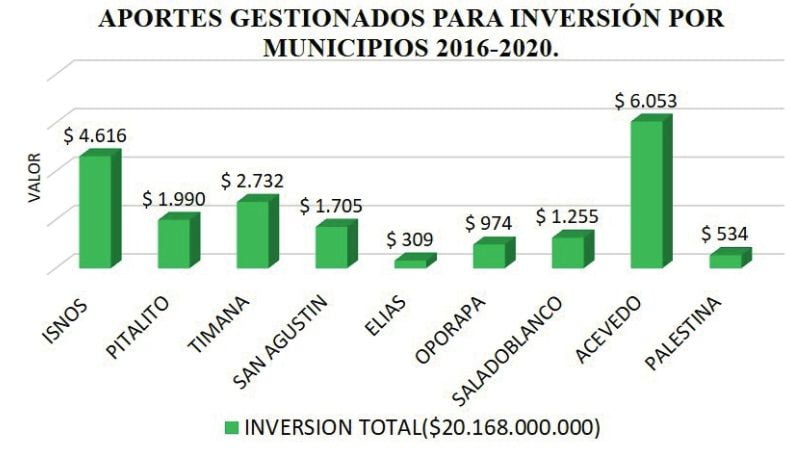Municipios como Acevedo con alto retorno , Isnos, Timana, Pitalito, San Agustin lograron interesantes reintegros que fueron invertidos en proyectos del Campo y Microempresa logrando beneficios sociales a un centenar de familias que se vieron motivadas en estos propósitos de negocio y mejores condiciones de vida.