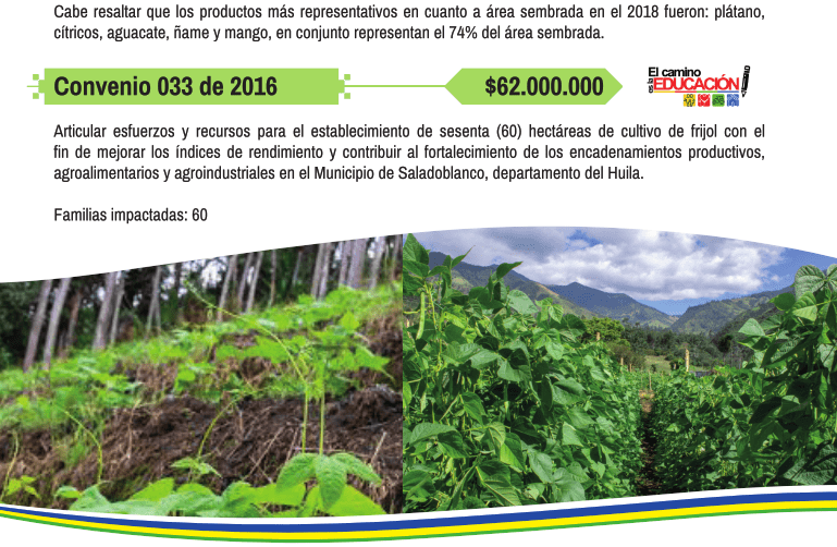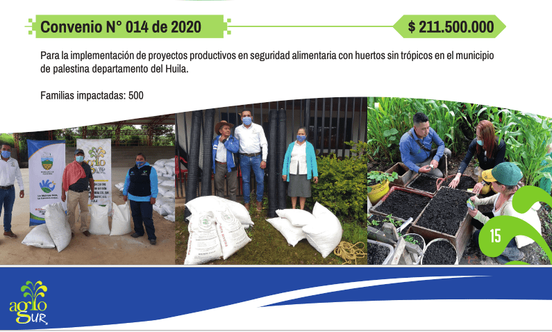 El informe al cierre muestra cifras concretas sobre la gestión de convenios con aporte destacado al medio ambiente y de igual manera a la promoción de los productos del campo en ferias y eventos públicos como la articulación de alianzas productivas para la paz y apoyo familias del campo en mercados solidarios en medio de la Pandemia del covid19.