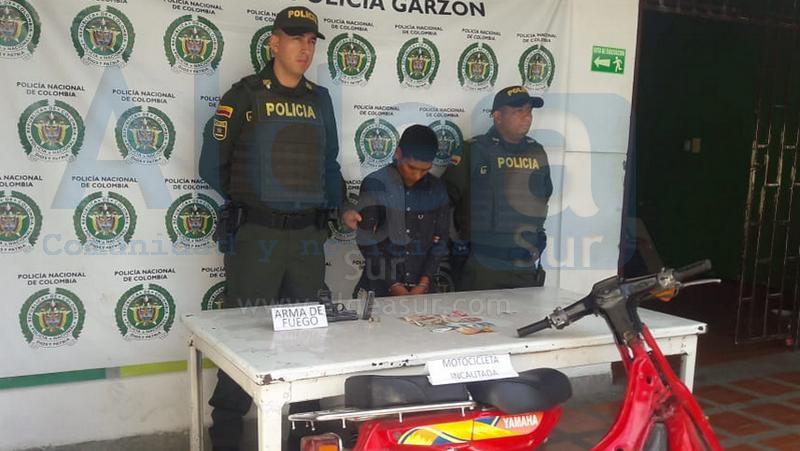 El capturado fue dejado a disposición de Fiscalía 26 de Garzón, por el delito de hurto tráfico, fabricación y/o porte de armas de fuego y municiones.