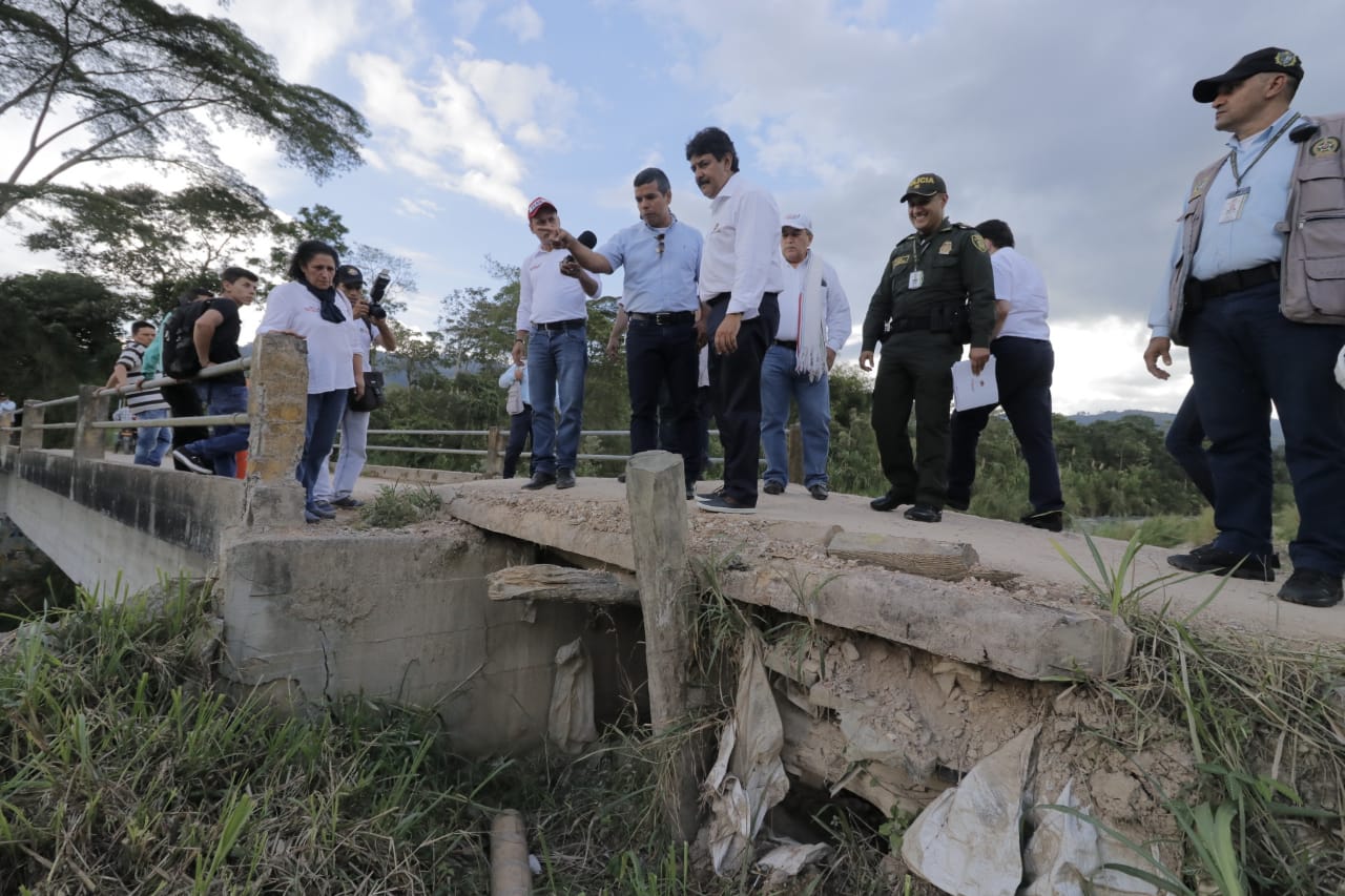 Durante la jornada de correría adelantada por las autoridades locales y departamentales, realizaron el acto simbólico “colocación de la primera piedra” del proyecto de reforzamiento estructural del puente en la vereda Holanda, con una inversión de 294 millones de pesos.