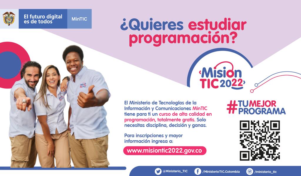 Este componente de formación se potenció con la Misión TIC, un programa que lanzó el presidente Iván Duque y la ministra Karen Abudinen para formar 100.000 jóvenes y adultos colombianos en programación. Este año se inició la formación de 5.623 programadores, para el año 2021 se espera alcanzar una cifra de 50.000 y, finalmente, para 2022 se capacitará a otros 47.500.