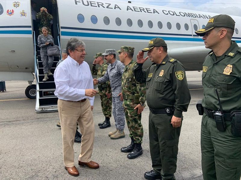 Esta tarde arribó a la ciudad de Neiva el Ministro de Defensa Carlos Holmes Trujillo;  Autoridades de Policía le recibieron  en cabeza del CR. Juan Carlos Restrepo Comandante de Policía Huila. Este Jueves asistirá a un consejo de seguridad en Pitalito.