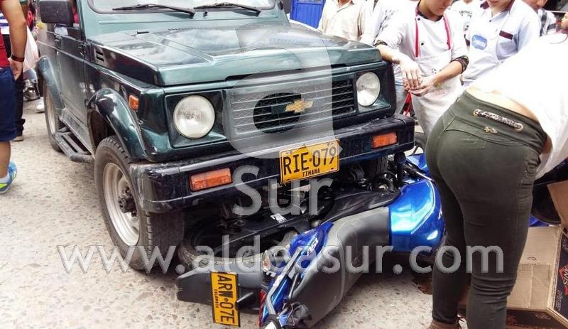 Un vehículo tipo campero, de placas RIE 079 colisionó contra una motocicleta de placa ARW07E, conducida por un adulto mayor.