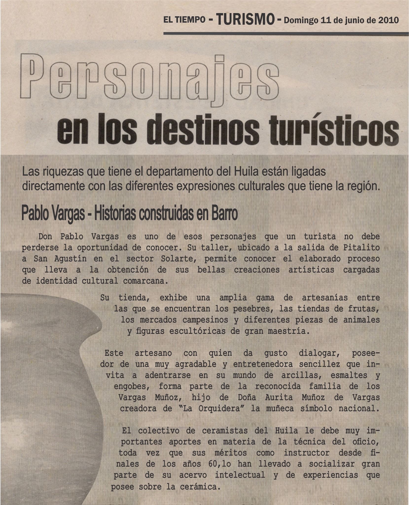Obra del Maestro Pablo José VargasRealiza sus estudios en Garzón, su ciudad natal, donde por petición de algunos ciudadanos de la localidad diseña y elabora el busto del entonces Presidente Encargado: el Doctor Roberto Urdaneta Arbeláez, quien por esos días estaba de visita. Es tal la maestría de la pieza, que por orden expresa de la Presidencia le es otorgada una beca para estudiar cerámica en la Escuela Superior de Artes y Oficios de El Carmen de Viboral en Antioquia, la mejor en su momento.