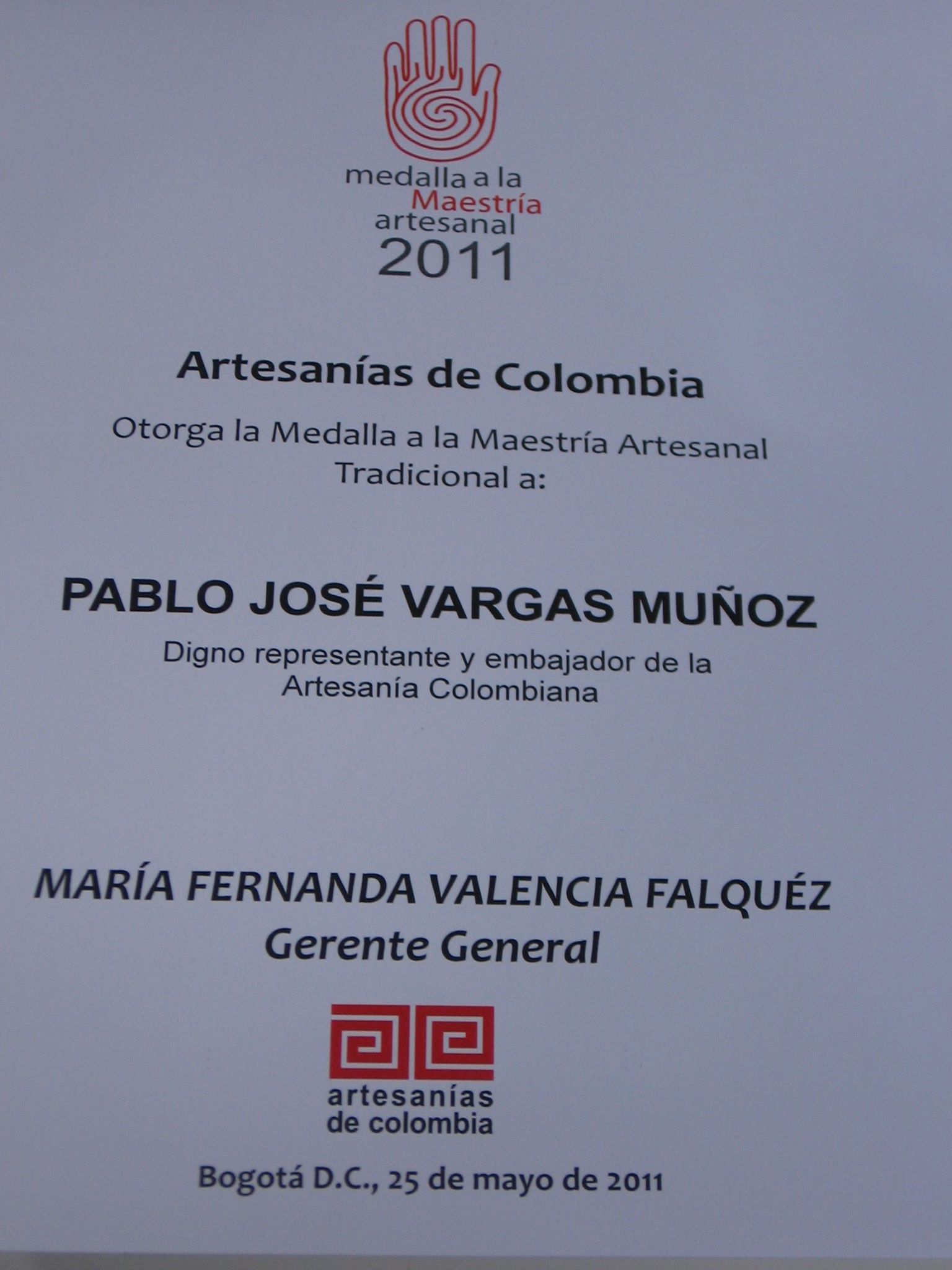 Maestro Pablo José Vargas – Imagen: Medalla a la Maestría Artesanal 2011