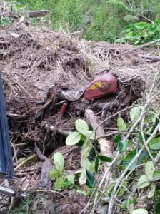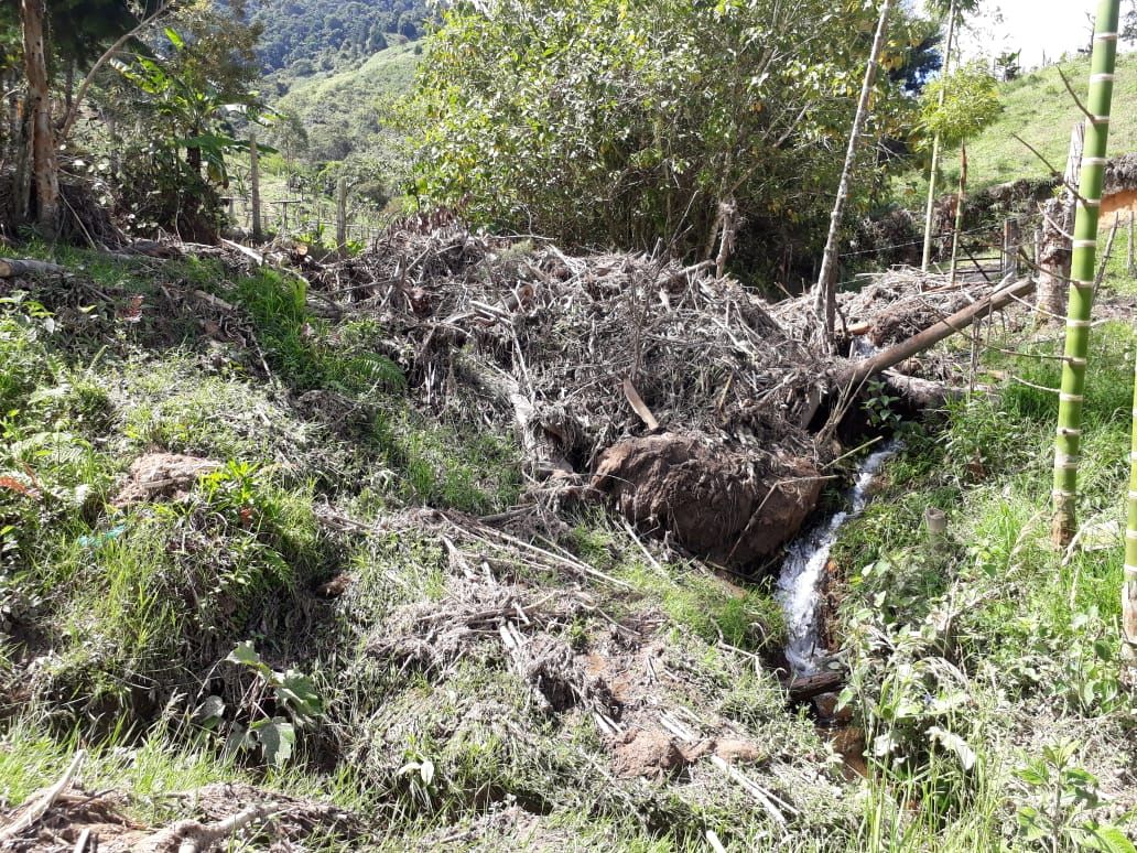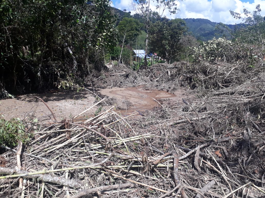El material vegetal fue arrastrado por las aguas que desbordaron el sector de la “chicha” en la vereda Montecristo del corregimiento de Bruselas – Pitalito.