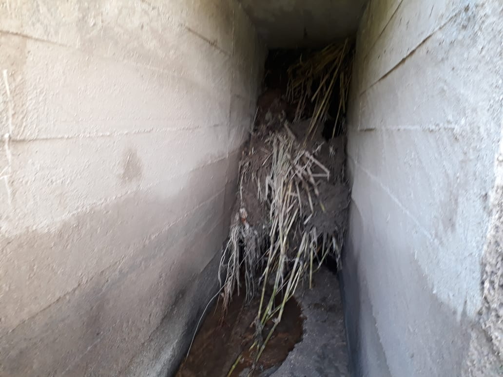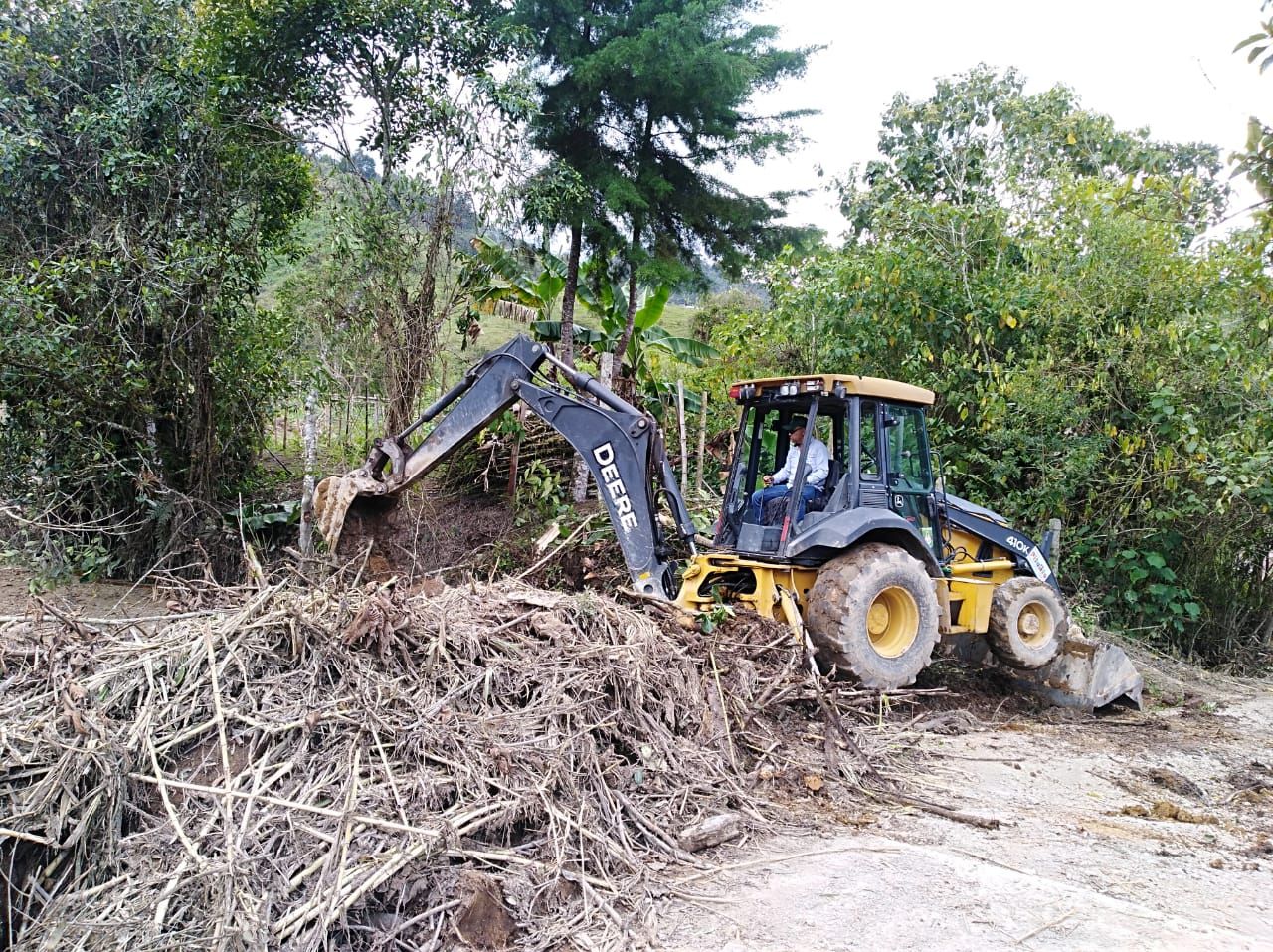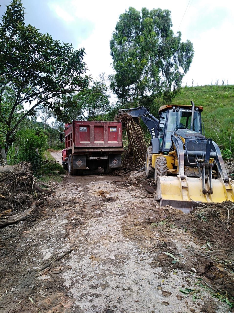 Personal de la secretaría de vías en infraestructura del municipio adelantan las labores de limpieza y retiro del material vegetal, el cual está generando taponamiento en un afluente hídrico, debido a las fuertes lluvias de últimos días.