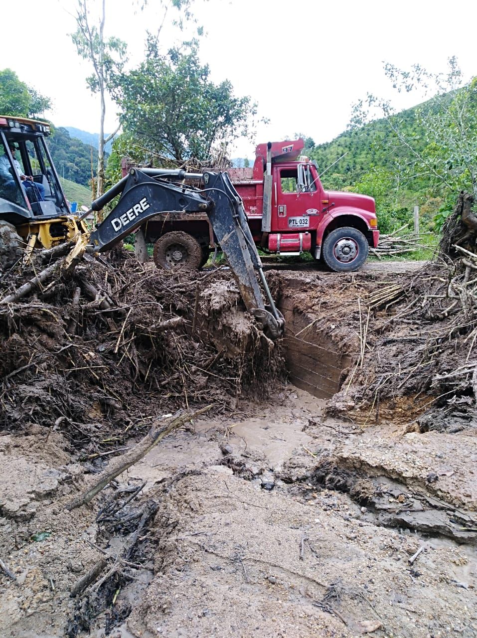 Según el reporte, hubo pérdida de 15 metros de la banca, se presentó taponamiento en dos alcantarillas por acumulación de lodo y piedra.