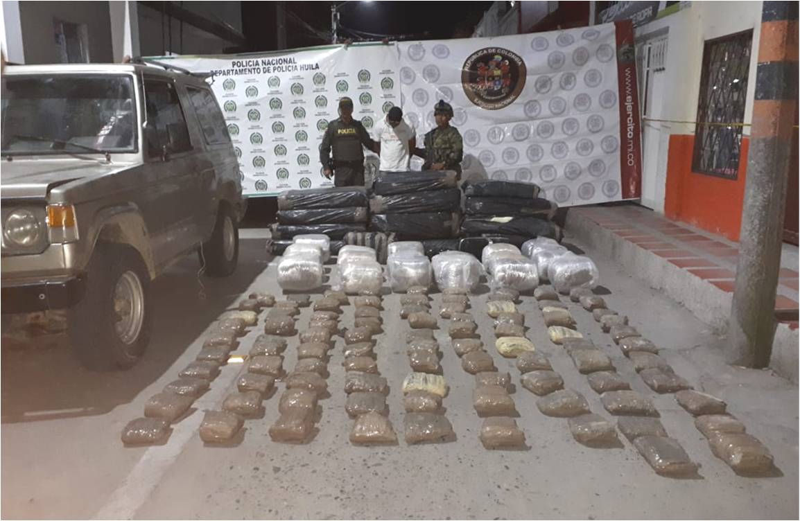 El operativo fue efectuado en el marco del plan de choque “el que la hace la paga” todos contra el narcotráfico, en el departamento del Huila; mediante información suministrada por fuente humana, en la cual manifestaron que el campero de placa IBN 675, había salido del corregimiento de Guadualejo, Cauca.