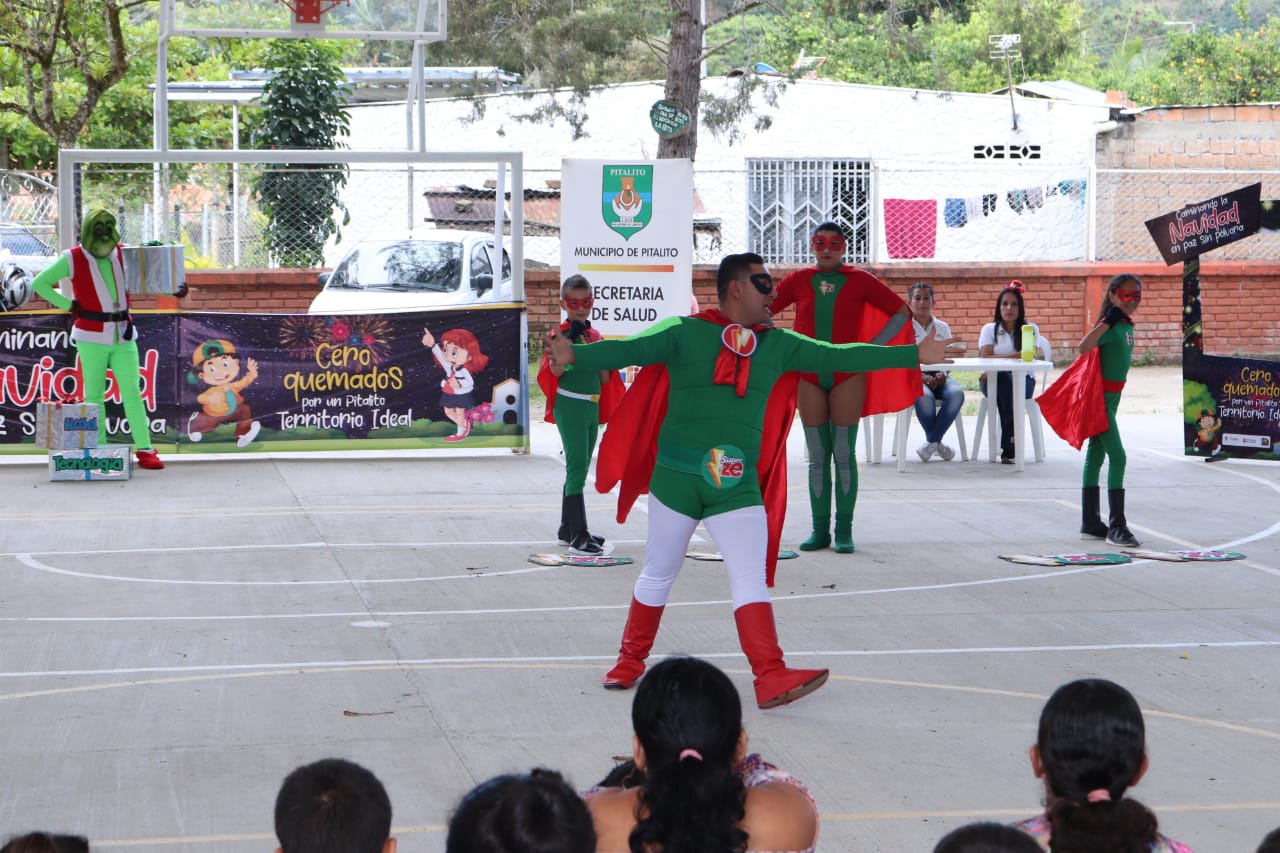 La gestora social, señora Sandra Lorena Solarte Ordóñez se unió a compartir una hermosa tarde llena de juegos y sonrisas, junto a los súper héroes de la Liga de los Zeros, llevando el mensaje de Ceros quemados en Pitalito.