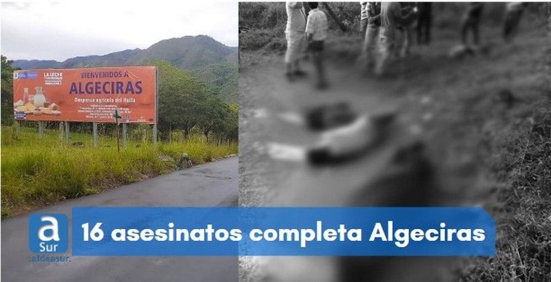 4 muertos y dos heridos, en una masacre registrada en el municipio de Algeciras en el centro del Huila se suman a las otras 12 víctimas por homicidio en lo corrido del año.