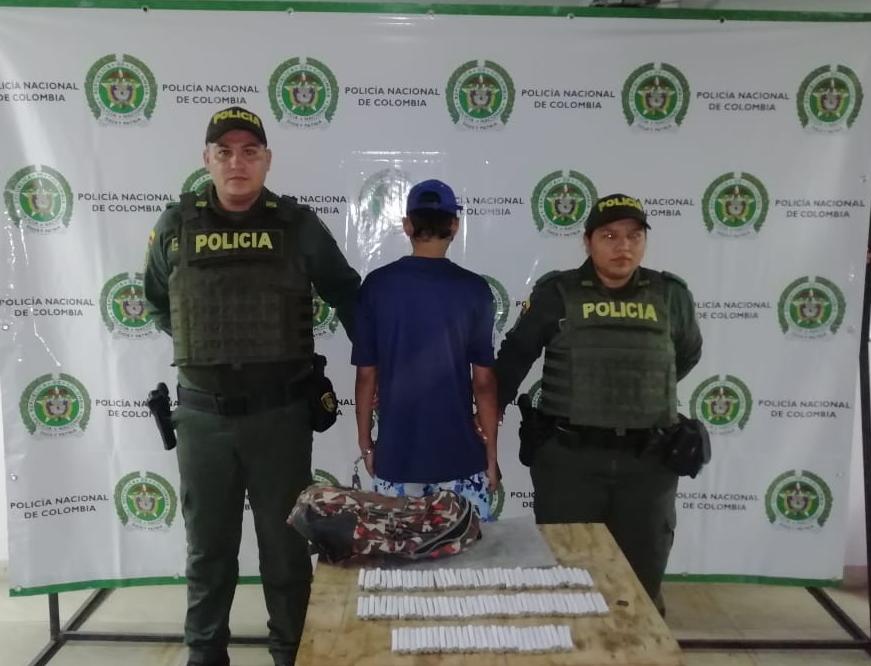Mediante actividades de registro y control en el barrio la Caraguaja de la capital arrocera de Huila, los uniformados del cuadrante aprehendieron a un menor de 17 años quien durante la requisa a sus pertenencias, le hallaron 115 cigarrillos de marihuana dentro de un bolso que al parecer pretendía comercializar en esa zona del municipio de Campoalegre.