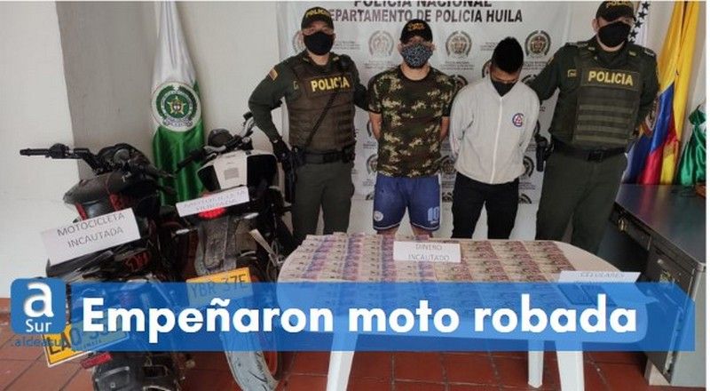 Jailer Andrés Camacho Cerquera de 26 años y Nelson Danilo Fernández Rojas de 25 años, creyeron que empeñando la motocicleta que se habían robado, no serían descubiertos.