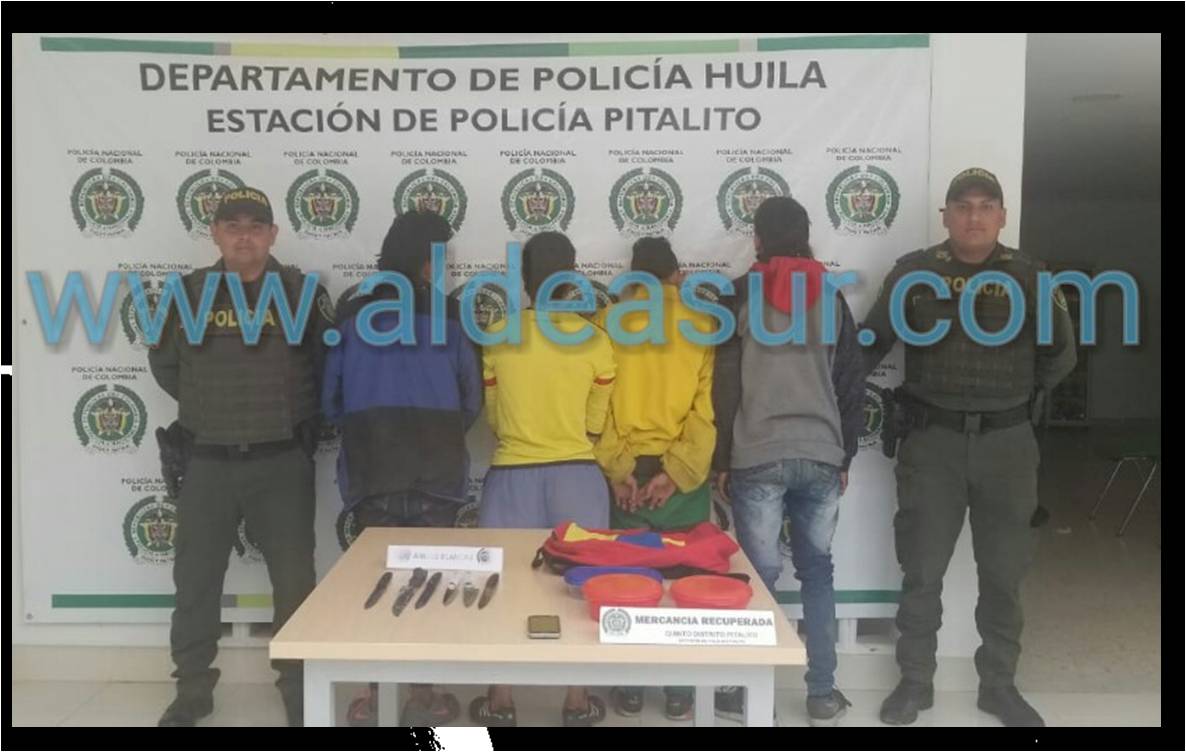 En la rápida acción de la policía en municipio de Pitalito, dentro del plan de choque «el que la hace la paga”, fueron aprehendidos 3 adolescentes de 17 y 15 años, quienes minutos antes, con el uso de arma blanca habían atracado a un hombre de 36 años procedente de Venezuela.
