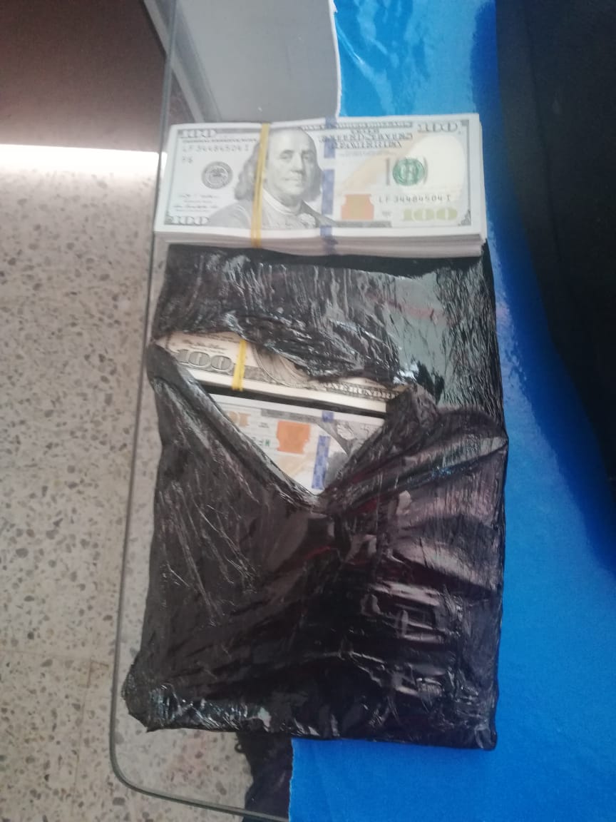 En el momento en el que iba hacer ingresado a la sala de retenidos, lugar donde hacen un registro más minucioso para evitar el ingreso de elementos con los que pueda atentar contra su vida, integridad o la de los retenidos; le hallaron en la plantilla de los zapatos otros dos paquetes de 10 mil dólares cada uno y dos mil más que tenía en sus medias. La sumatoria de este dinero es de 180 mil dólares, que en pesos colombianos serían unos 540 millones de pesos.
