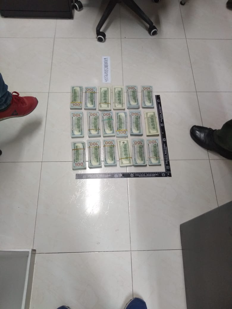 En el momento en el que iba hacer ingresado a la sala de retenidos, lugar donde hacen un registro más minucioso para evitar el ingreso de elementos con los que pueda atentar contra su vida, integridad o la de los retenidos; le hallaron en la plantilla de los zapatos otros dos paquetes de 10 mil dólares cada uno y dos mil más que tenía en sus medias. La sumatoria de este dinero es de 180 mil dólares, que en pesos colombianos serían unos 540 millones de pesos.
