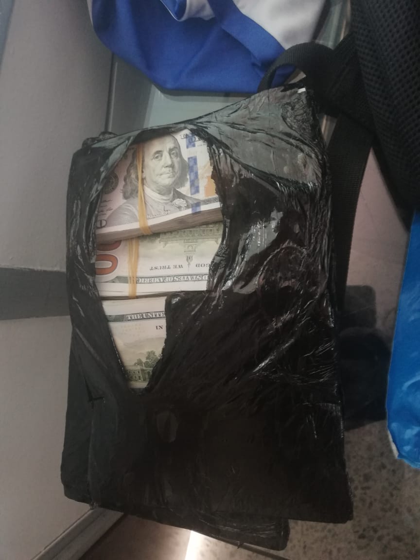 Tras la captura y el hombre fue llevado hasta una de las oficinas del aeropuerto hizo entrega voluntaria de 30 mil dólares que saco de sus partes íntimas, y durante el registro le hallaron dentro de la chaqueta 8 mil dólares; para un total de 158 mil dólares inicialmente.