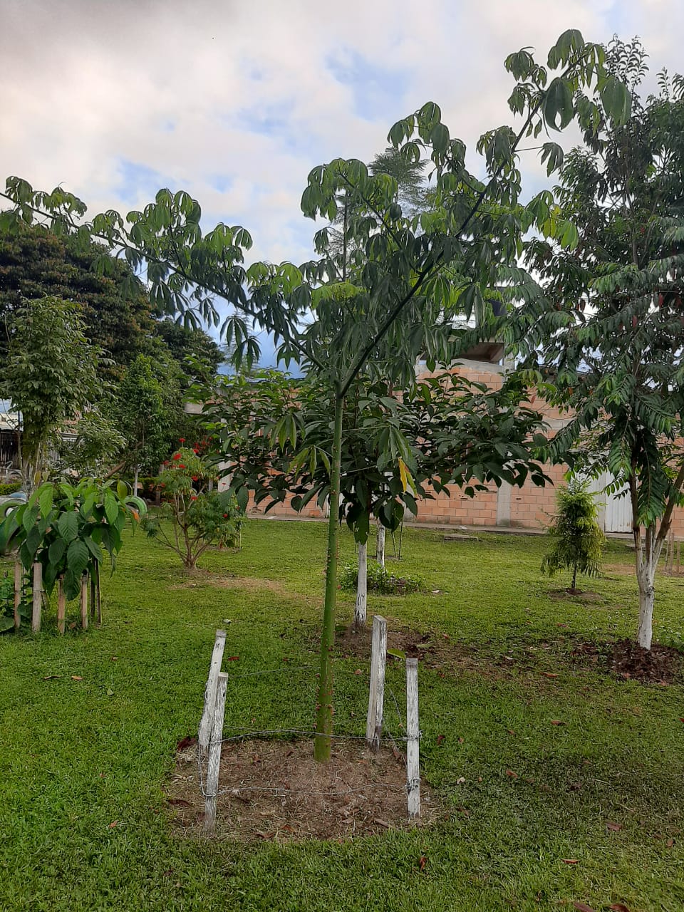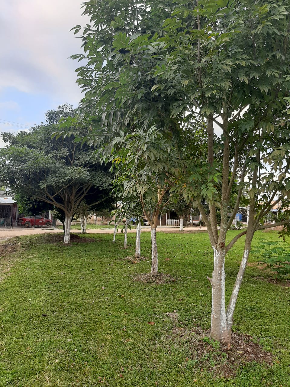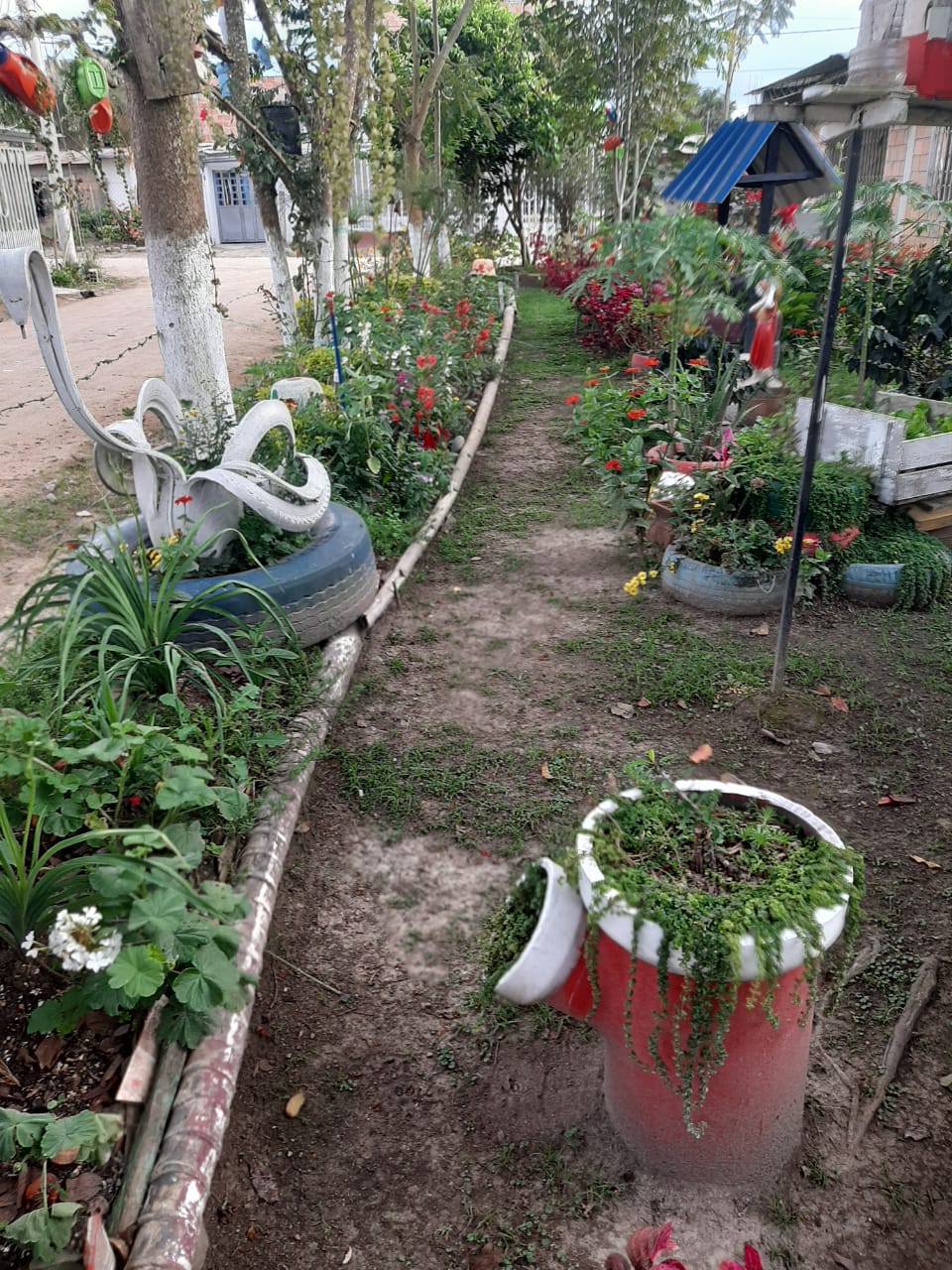Allí con el trabajo comunitario han sembrado un hermoso jardín, y al otro costado arboles de sombra como guayacanes, acacias, eucalipto, y algunos arboles frutales como aguacates, guanábano, naranjos. El trabajo de recogida de limpieza lo hace también la comunidad.