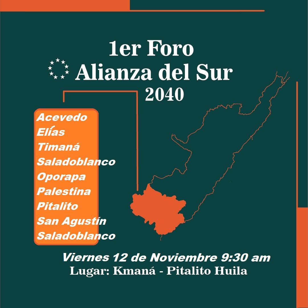 El foro LA ALIANZA DEL SUR fue convocado por estudiantes, profesionales, empresarios y comunicadores que en conjunto visualizan desde otros escenarios a nivel nacional la gran meta de volver realidad la provincia del sur promovida desde la Ley Orgánica de Ordenamiento Territorial en Colombia que destaca la conformación de esquemas asociativos territoriales.