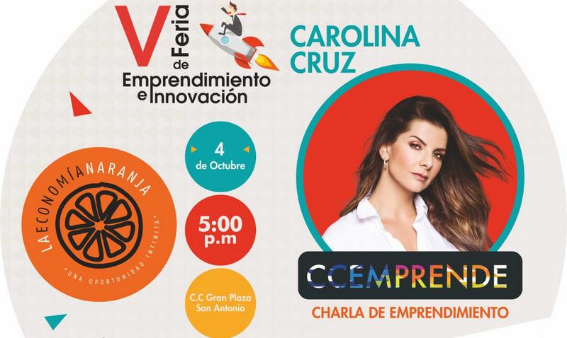 5:00 p.m Conferencia de apertura sobre emprendimiento Economía Naranja – Modelo, presentadora y empresaria Carolina Cruz en las instalaciones del centro comercial Gran Plaza San Antonio.