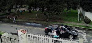 En otra podemos ver, como a un hombre en silla de ruedas lo abordan dos sujetos en automóvil, los cuales empiezan a forcejear con el. el hombre sin poder hacer mas, solo pedía auxilio, llamando la atención de las personas al rededor, que acudieron a el causando que los delincuentes emprendieran la huida en un vehículo que tenía placas distintas en las partes delantera y trasera.