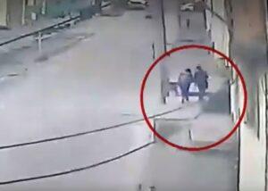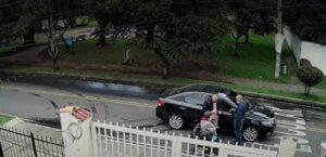 En otra podemos ver, como a un hombre en silla de ruedas lo abordan dos sujetos en automóvil, los cuales empiezan a forcejear con el. el hombre sin poder hacer mas, solo pedía auxilio, llamando la atención de las personas al rededor, que acudieron a el causando que los delincuentes emprendieran la huida en un vehículo que tenía placas distintas en las partes delantera y trasera.