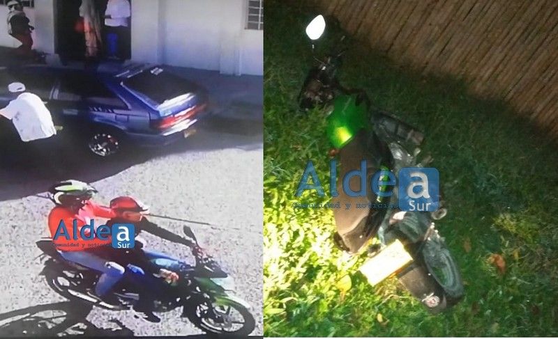 La motocicleta de placa JLY 79E, en la que se movilizaban los delincuentes cuando cometieron el despiadado hecho de sangre, fue abandonada en las últimas en el Barrio Villa del Prado.