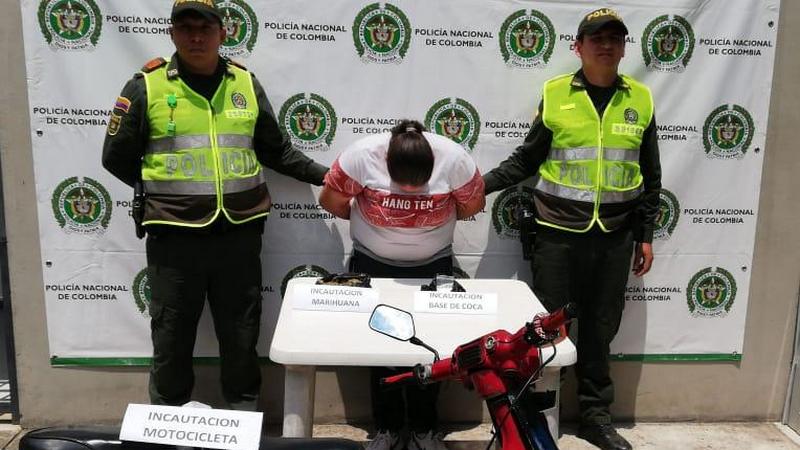 Según se conoció, la mujer se trasladaba en una motocicleta hacia Pitalito y en un puesto de control, fue sorprendida con 260 dosis de marihuana y 82 dosis de base de coca, listas para ser comercializadas.