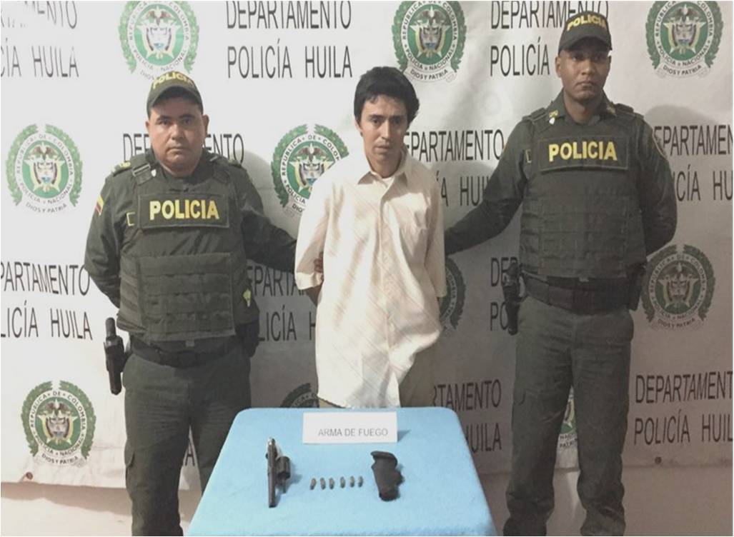 En el municipio de Íquira, Huila la policía capturó a Luis Armando Paique Medina, de 39 años, por el delito de tráfico, porte y/o fabricación de armas de fuego y municiones