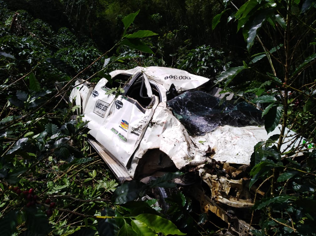 Según se conoció la camioneta de placas UGO-307 se detuvo para recoger unos bultos de café, pero una falla mecánica hizo que rodará al menos 150 metros.