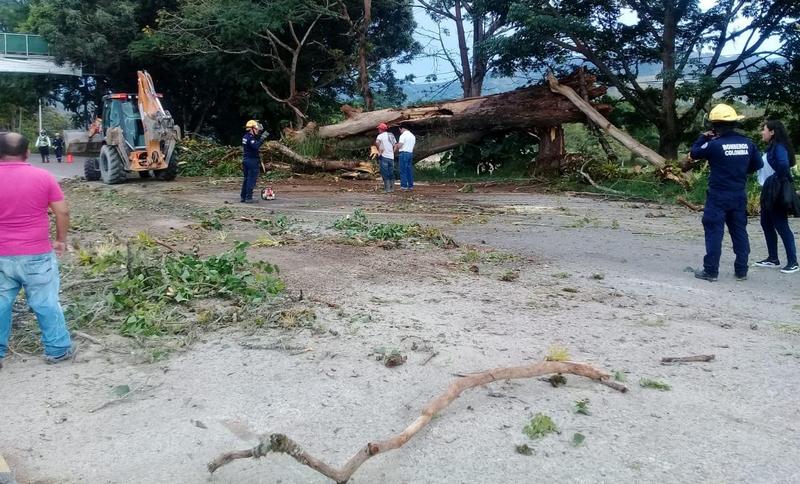 Corte de árbol el cual fue derribado por los fuertes vientos en la entrada al barrio San Miguel, obstruyendo vía de acceso al barrio.