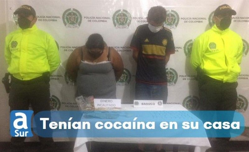 Los capturados corresponden a Rocío Cárdenas Artunduaga de 34 años y Yéferson Calderón Sánchez de 24 años, quienes tenían en su poder 13 envolturas de papel cuadriculado y una bolsa transparente con 26.7 gramos de cocaína, avaluado todo en $270.000, más la suma de $788.000 en efectivo al parecer producto de la venta.