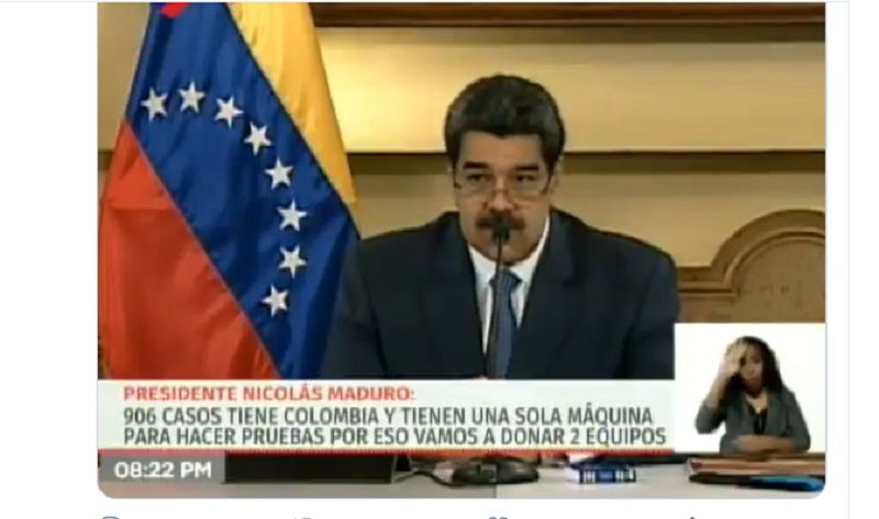 Nicolás Maduro, presidente del oficialismo en Venezuela, anunció en televisión pública de este país, que donará dos maquinas para que en Colombia se sigan haciendo los exámanes de Covid-19.