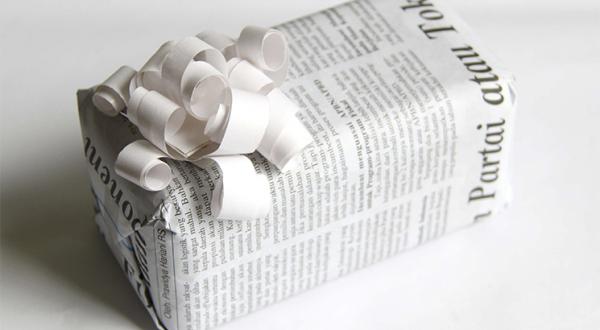 Envolver los regalos con papel periódico, una tendencia “eco amigable” para esta Navidad.
