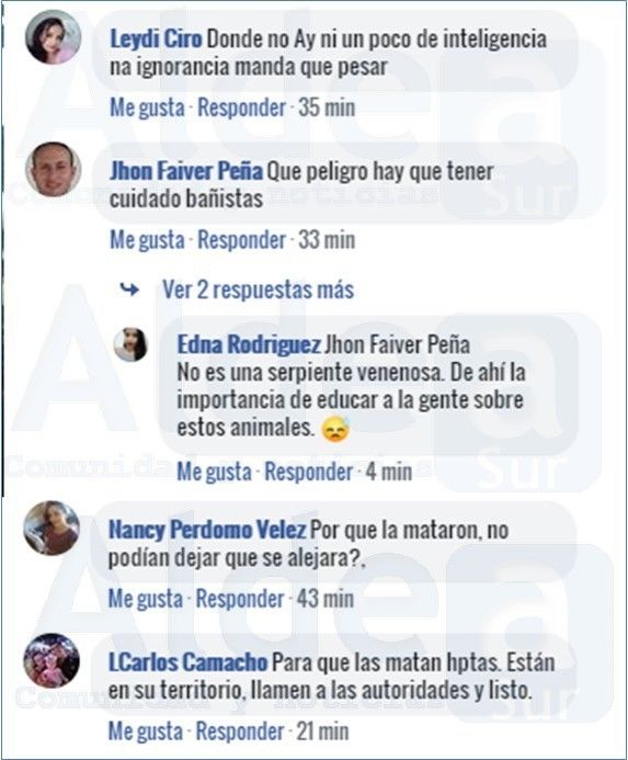 El caso más reciente se presentó en un balneario ubicado en Oritoguaz, Elías – Huila; donde en medio del paseo los bañistas hallaron una serpiente “No venenosa” Spilotes, comúnmente conocida en algunas regiones con el nombre de “Cazadora o Toche”. Es una serpiente grande que alcanza hasta los 3 metros de longitud, se alimenta de una amplia variedad de presas, incluyendo pequeños mamíferos, aves y lagartos; le gusta habitar en zonas boscosas y es de hábitos arbóreos.