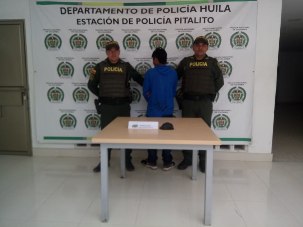 La rápida respuesta de las autoridades ante información suministrada telefónicamente por la comunidad; les permitió capturar a Rogelio Agustín Méndez Sánchez, de 18 años, quien se desplazaba por la vía que del municipio del Agrado conduce a Garzón.